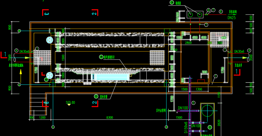 以两组紫外消毒渠为例,明渠形式紫外消毒渠平而布置如下图所示。